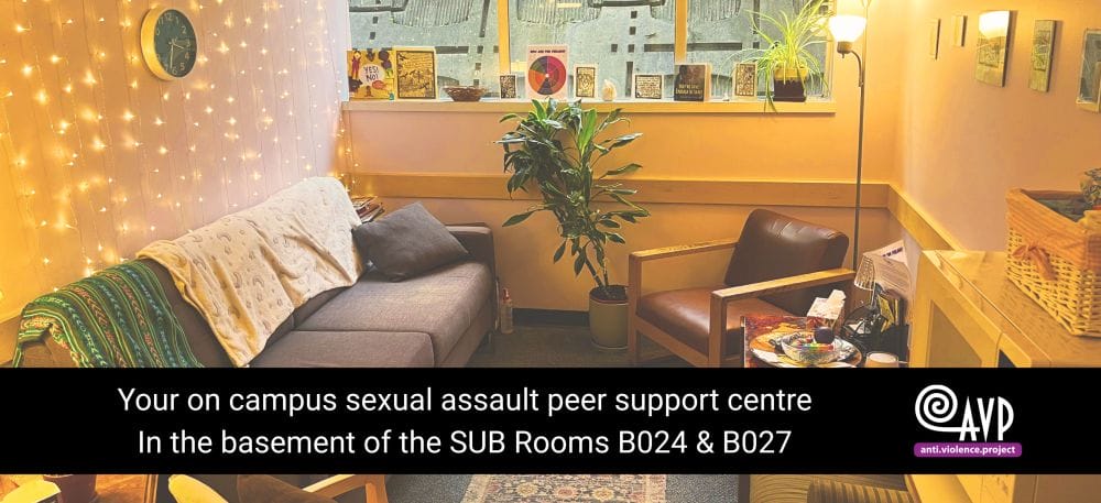 AVP is your on-campus sexual assault resource centre, funded through student fees.